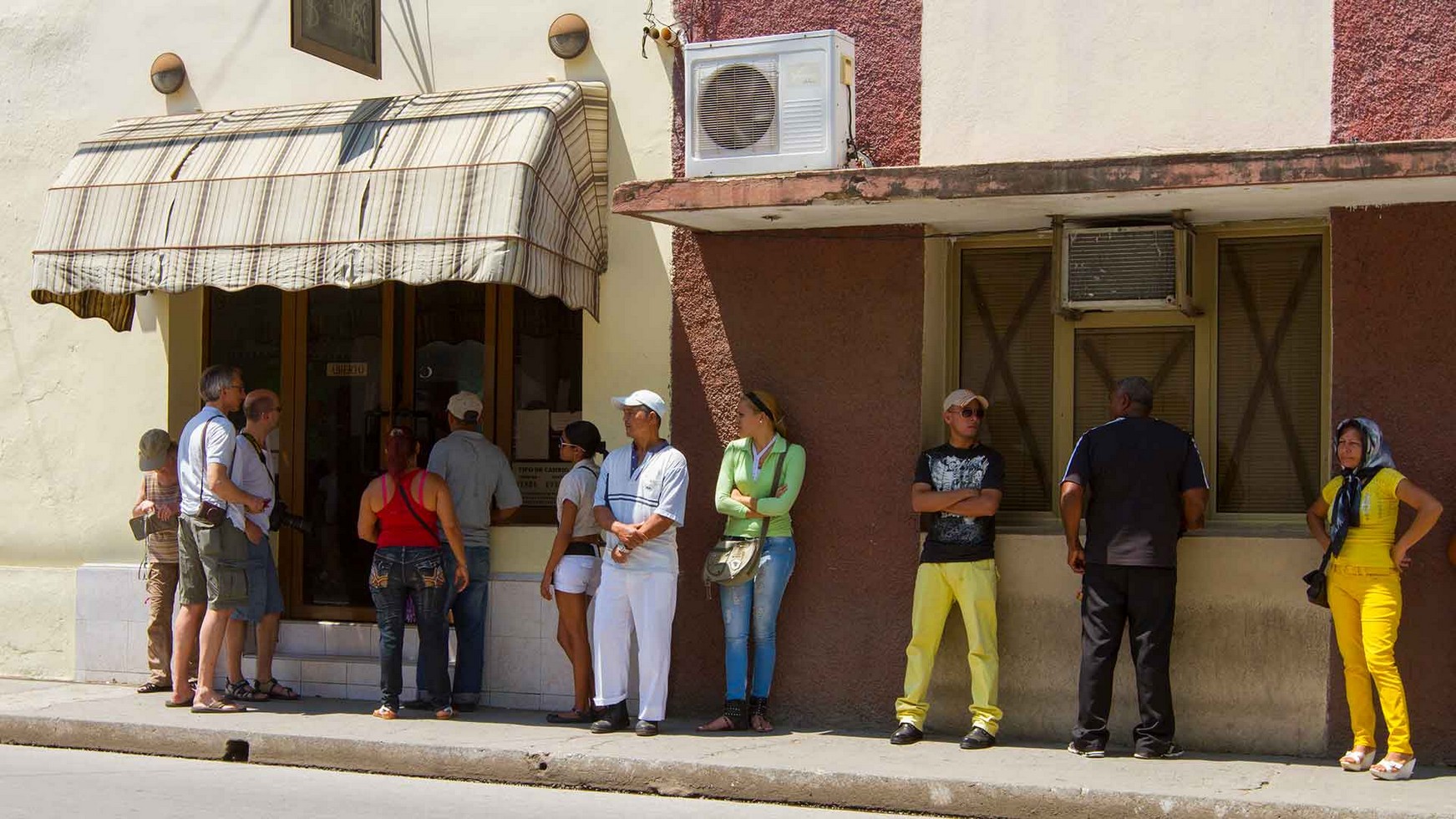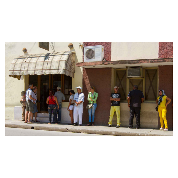 Bayamo, in der Schlange warten an einem Geldinstitut auf Auszahlung.