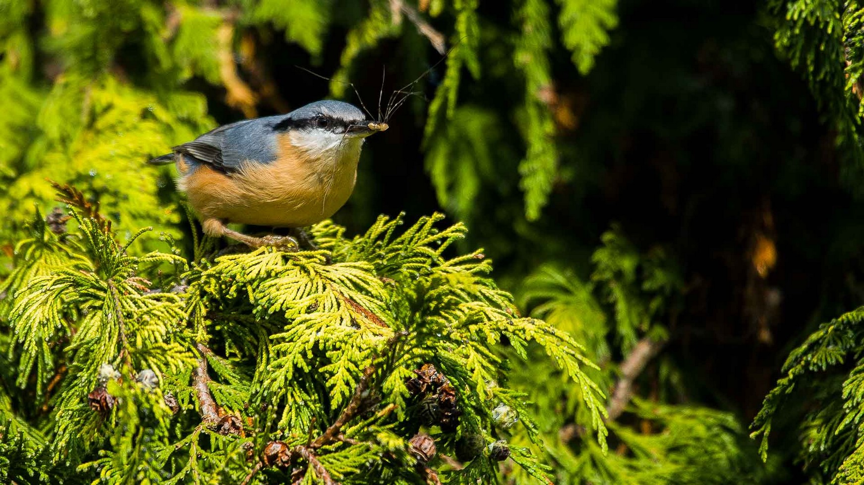 Kleiber mit Weberknecht als Beute. Bild 47